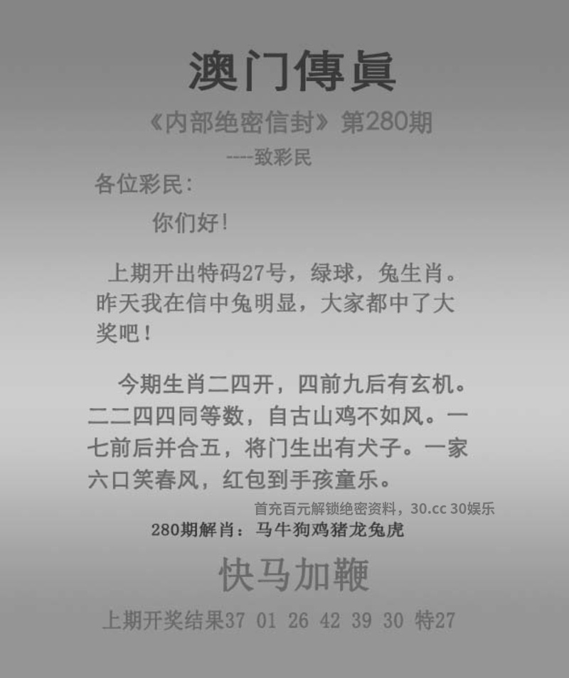 284期【马会传真】开牛41准 今期生肖四九开,一二三头好玄机 单数有奖红也是,六宮羅袖一時招 一路风尘出乾坤,速胜能人高高上 虎入平阳受犬欺,想见四五除九码 解:今期单数有奖红也是,解红肖马兔鼠鸡,速胜能人高高上,解吉美生肖兔龙蛇马羊鸡 综合:羊马狗牛鸡虎蛇猴猪 |